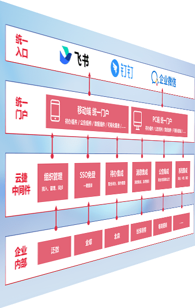 对协作平台提供支持服务,,支持企业应用与协作平台对接,,包含组织同步、、、、消息集成、、、、待办集成等。。。支持目前主流的协作平台:钉钉、、、企微和飞书。。。。